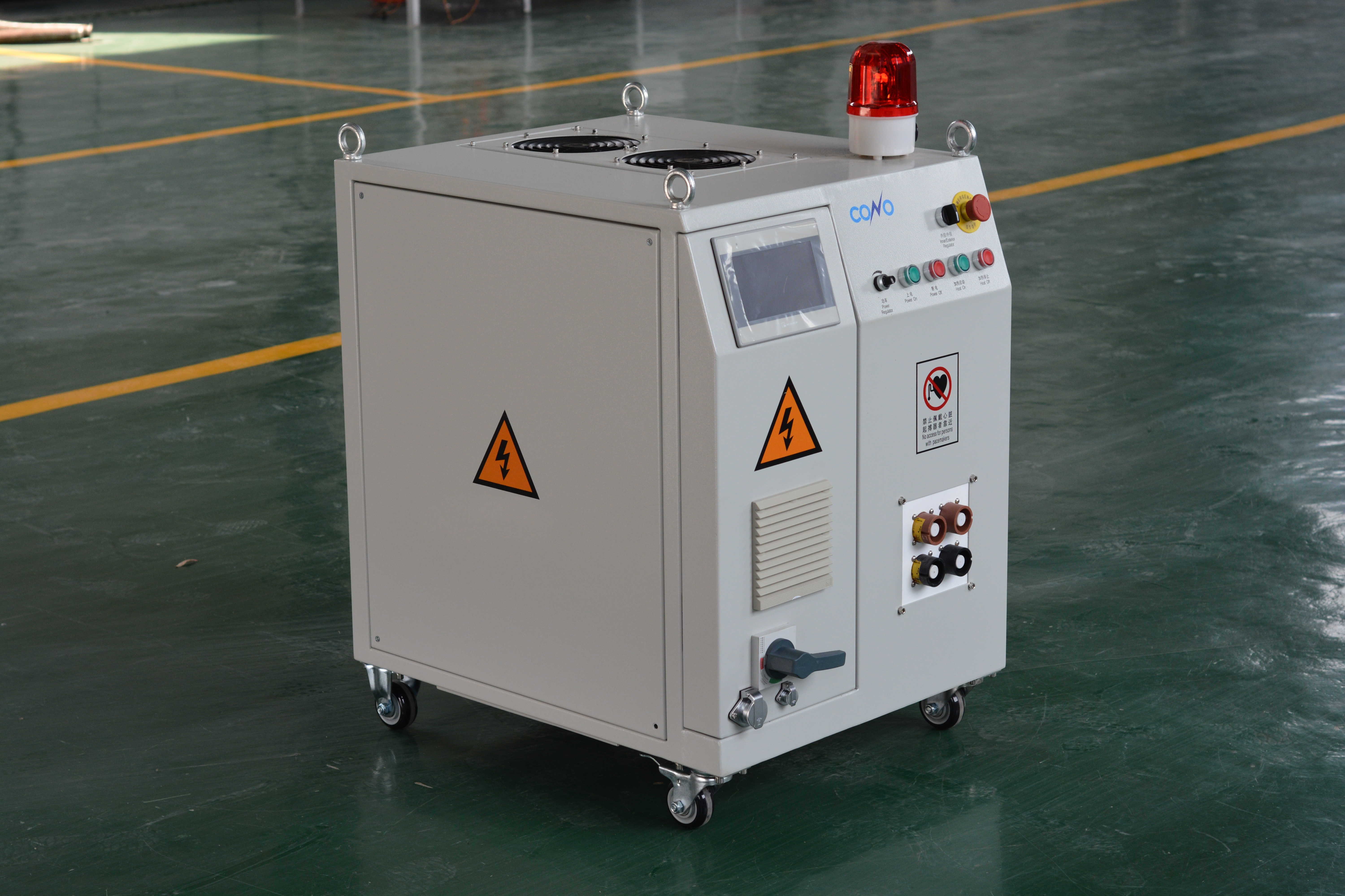 科諾空冷電源頻率范圍1~20kHz,功率范圍30~200kW,不需要冷卻水、能夠連續(xù)長(zhǎng)時(shí)間工作、控制精度高、適合野外作業(yè),主要應(yīng)用于石油天然氣管道涂覆加熱、鐵軌焊后熱處理等領(lǐng)域。